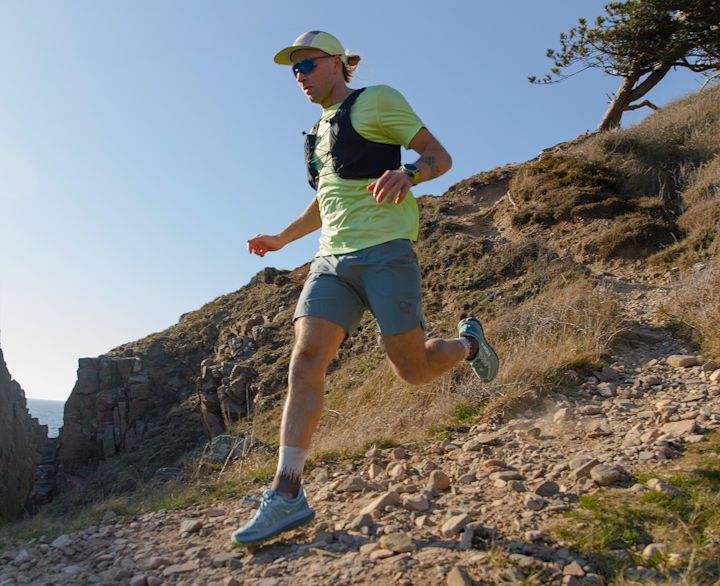 Die richtige Technik reduziert Verletzungsgefahr und macht das Laufen effizienter. Setze beim Laufen in unebenem Gelände auf dem Vorder- oder Mittelfuß auf, für bessere Kontrolle. Vermeide es, auf der Ferse zu landen und zu den Zehen abzurollen; das eignet sich besser für ebenen Untergrund. Die Vorfußtechnik aktiviert Waden- und Gesäßmuskeln stärker, verbessert den Lauf und entlastet Knie und Hüften.
